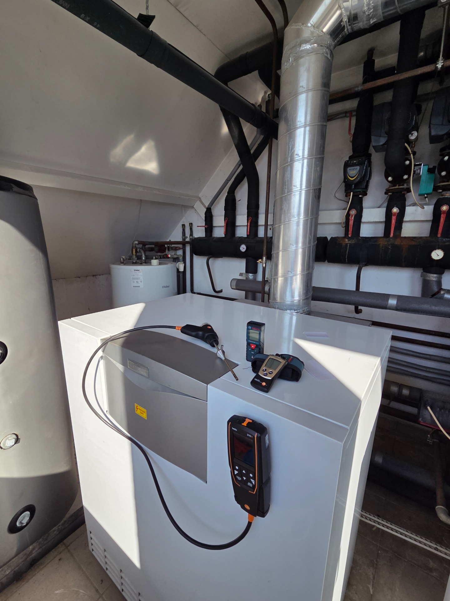 (Testo füstgázelemző - Testo infra hőmérő - Bosch távolságmérő)