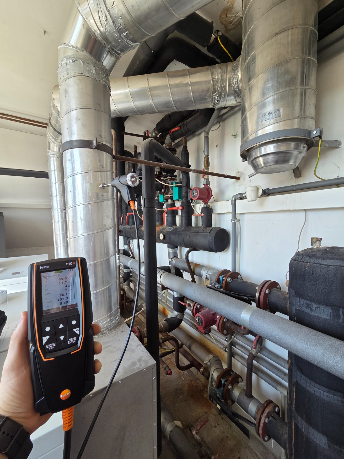 (Testo 310 II füstgázelemző műszerrel)